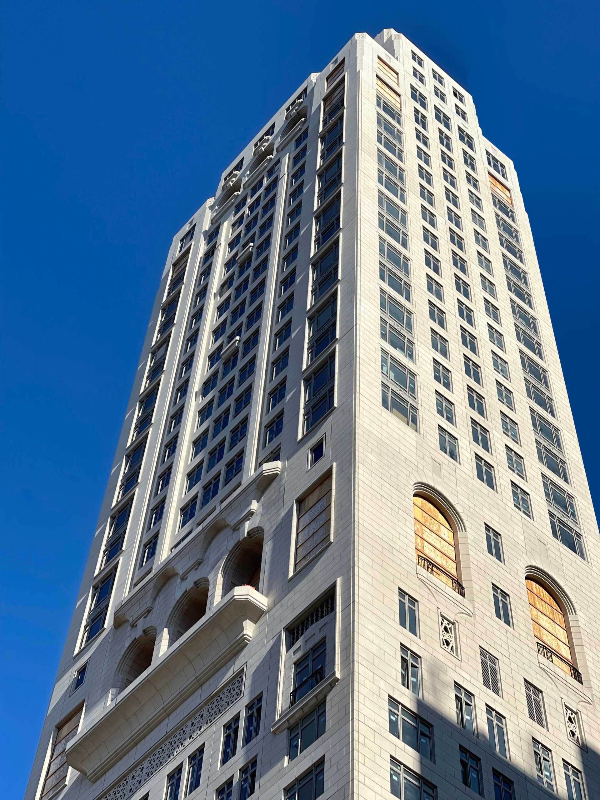 Additional windows and limestone façade panels have been installed since our last update (https://newyorkyimby.com/2022/07/ramsas-200-east-83rd-street-approaches-completion-on-manhattans-upper-east-side.html) in July, including on the eastern elevation, where the construction elevator is being dismantled. Only a few finishing touches remain, such as the installation of windows near the top of the tower and at its midpoint. Sidewalk scaffolding still surrounds the property, but should be removed in the coming weeks as exterior work wraps up.